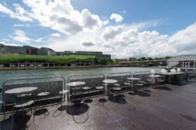 Rent the outdoor top deck of our boat for your private events and take advantage of our great view of the Seine ! The upper deck, measuring 120m2, can hold up to 100 guests ! We also have a big space with a glass roof inside the boat for meetings and presentations (or more room to dance!).